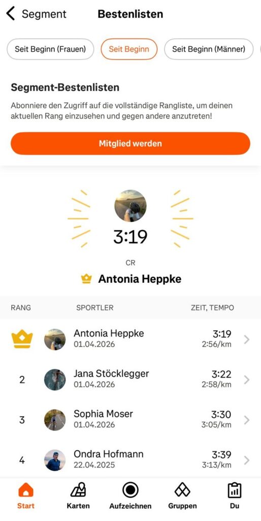 Als krönenden Abschluss versuchten wir den KOM auf der Beliebten Laufbahn im Zentrum zu holen und standen mit 3 Nachwuchsstaffeln am Start. Das Ergebnis zeigt was im Team alles möglich ist! Anschließend gab es auch bei einer Schwimmstaffel noch zu zeigen was noch möglich ist.